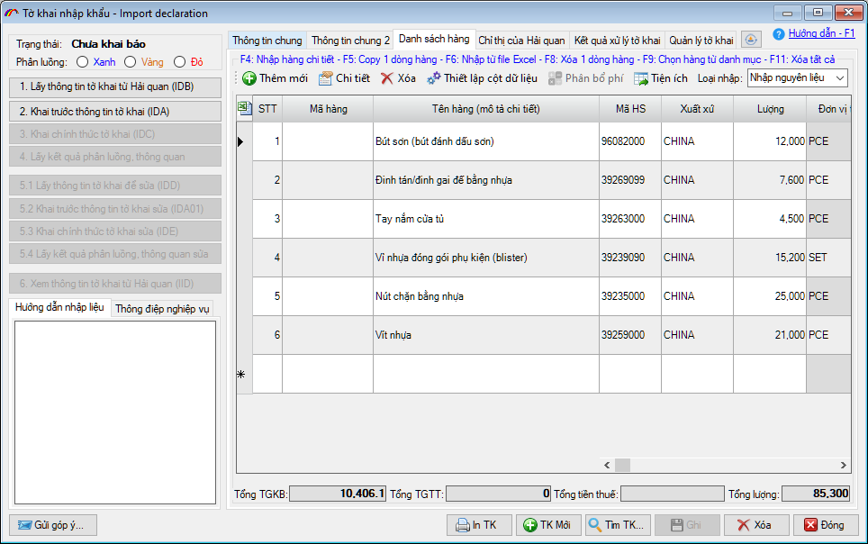 Với lựa chọn này, khi tạo tờ khai sẽ không bao gồm thông tin hàng hóa, người khai sẽ tự nhập thủ công danh sách hàng vào tờ khai (nhập thủ công, import từ excel, chọn từ danh mục…).